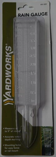 | Special Features | Measures up to 5" of rainfall, Accurate water depth markings, Mounting holes for wasy fence or rail mount |