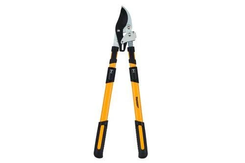 Yardworks® Ratcheting Bypass Lopper with Telescopic Handles are designed for cutting back green vegetation. With 1-1/2″ cutting capacity, the rachet mechanism means precision cuts with minimal effort. Non-stick coated blades will allow you to power through your toughest limbs with ease.